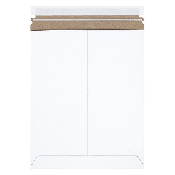 Mailer Envelopes, Material Chipboard, Mailer Type Flat, Closure Style Self Sealing, Color White, Usable WxL 11x13 1/2 in, Usable Width 11 in, Usable Length 13 1/2 in, Outside WxL 11-3/4x13-1/2 in, Outside Width 11 in, Outside Length 13 1/2 in, Mailer Number Not Applicable, Bubble Size Not Applicable, Material Thickness 0.02 in, Post-Consumer Recyclability 97 Percent, With Tear Strip Yes, Pre-Printed Address Lines No, Package Quantity 100