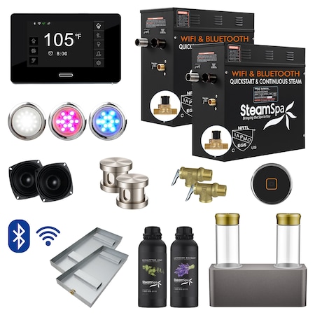 6KW Steam Bath Generator, Fully Wireless Remote, BLUETOOTH, WIFI, Auto Drain, Brushed Nickel