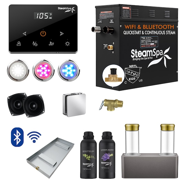 - INCLUDED: 7.5 KW Steam Bath Generator, Single Touch Control, Square Brushed Nickel Steamhead, Built-in Auto-Drain, PR-Safety Valve, and Three Aroma Bottles Free