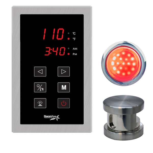 The control panel is the primary input device for any SteamSpa steam generator. With a large LCD display and simple to use interface the control panel allows access to room temperature controls and time setting options for your generator. With a stylish design it will match with most any bathroom style or décor adding to an overall luxurious sauna atmosphere. Take control of your ideal sauna experience with this stylish control panel and create the steam sauna experience that’s perfect for you.