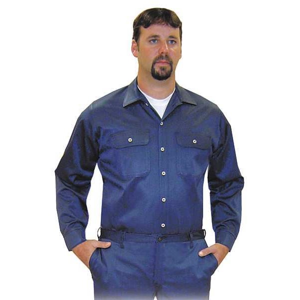 ATPV Rating 8.1 cal/sq cm, Arc Flash PPE Category 2, Color Navy, Fabric Weight 8 oz, Closure Type Buttons, Flame-Resistant Collared Shirt, Material Trade Name Vinex(R), Maximum Chest Size 47 in, Minimum Chest Size 44 in, Neck Style Collar, Number of Pockets 2, Size L, Sleeve Length 34 in
