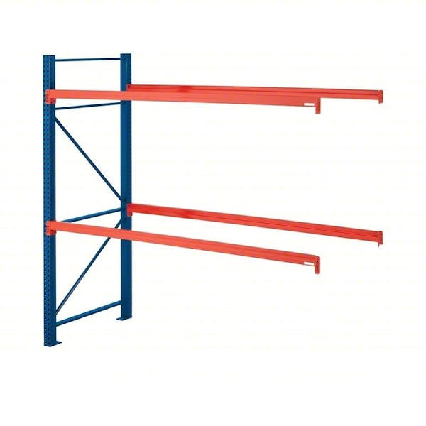 Pallet Rack Add-On Kit, Beam Height 4 in, Beam Step Depth 1/2 in, Beam Step Height 1 5/8 in, Step Beam Beam Style, 17 ga, Footplate Depth 1 5/8 in, Footplate Width 3 in, Overall Depth 48 in, Overall Height 12 ft, Overall Width 102 in, Load Capacity per Shelf 5,080 lb, Add-On Pallet Rack Configuration, 16 ga, Upright Load Capacity @ 36 in 31,340 lb, No, Number of Levels 2, Whole Unit Load Capacity 10,160 lb, Usable Width 8 ft, Orange Beams/Blue Uprights, Teardrop Connection Type, Powder Coated