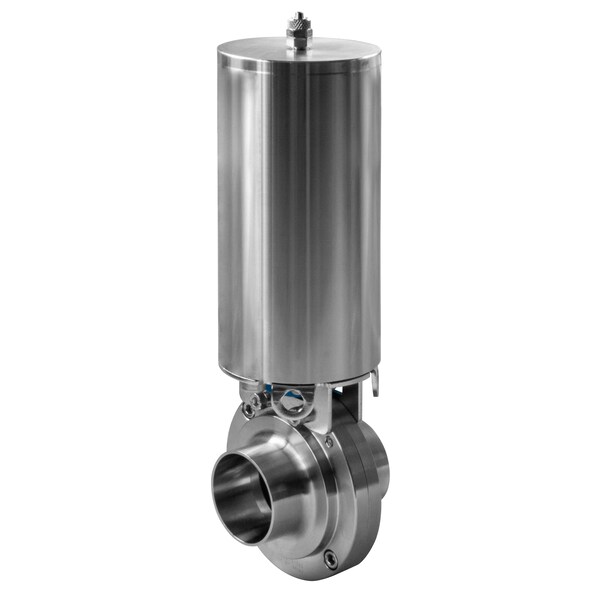 BFVAC NO - BUTTERFLY VALVE, ACTUATED / CLAMP ENDS / NORMALLY OPEN - 2", Commonly referred to as "normally open", these quarter-turn stainless steel sanitary valves use a disc mounted on a rotating spring-loaded shaft operated with an actuator to close and control flow. Designed to create a leak-proof connection to clamp fittings when combined with a gasket and clamp. In the event of failure, these valves fail opened.