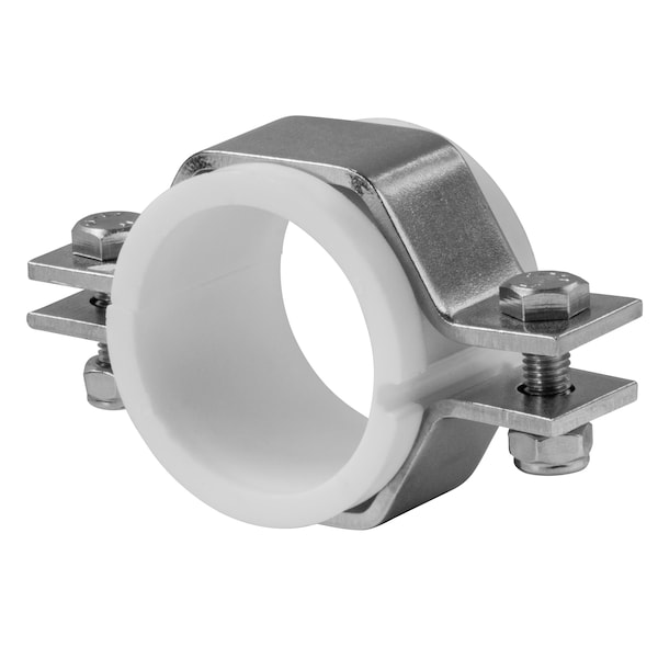 24PVC - TUBE HANGER W/PVC SLEEVE - 2", Used to mount and secure tubing by welding the hexagonal shaped hanger to any flat metal surface. Note: PVC sleeves not recommended for hot applications.