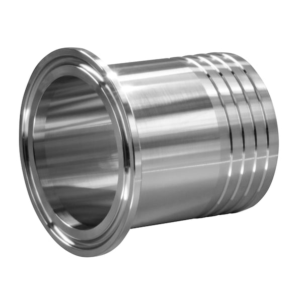 14MPHR - RUBBER HOSE ADAPTER - 2" X 2" X 2.312" OAL, Commonly referred to as hose barbs, these stainless steel sanitary fittings are tri-clamp adapters that connect tri-clamp fittings with external rubber hoses utilizing a grooved end to create a tight seal for hose connections., 3-A Certified, CRN Certified