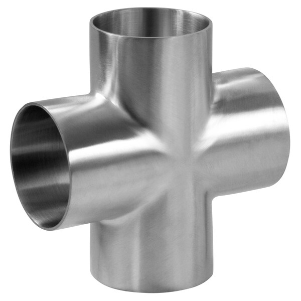 9W - BUTT WELD LONG CROSS - UNPOLISHED - 4", Commonly referred to as butt weld fittings, these stainless steel sanitary fittings are welded to connect to tubing or other fittings for a permanent and flush connection., 3-A Certified, CRN Certified