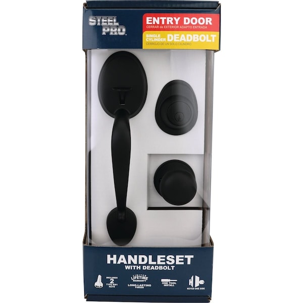 Matte Black Entry Door Handleset with Half Round Interior Knob