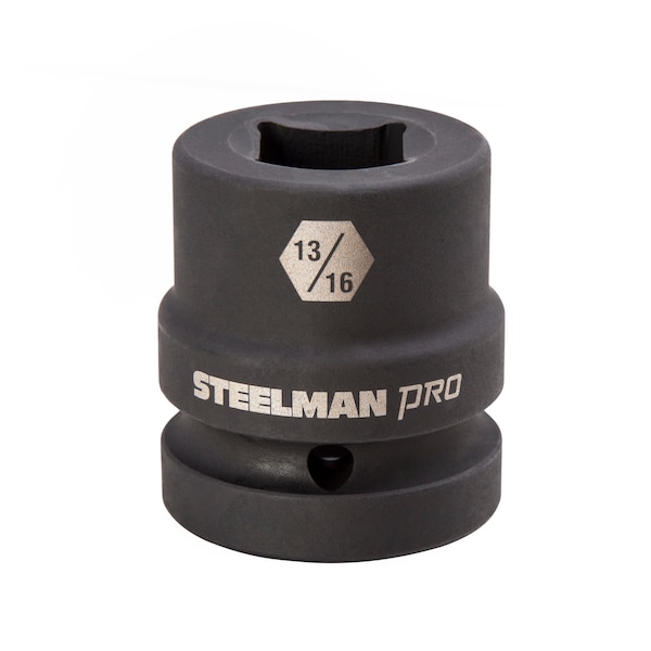 Every mechanic knows that having the right tools on hand can make your life easier when working on heavy-duty vehicle wheels. The STEELMAN PRO 79333 1-Inch Drive 13/16-Inch 4-Point Square Budd Impact Socket is designed specifically to help in the removal of the threaded, square end studs used in Budd style heavy-duty truck wheels. Made from drop forged and heat treated chromoly steel, this sockets feature a ball detent recess on the 1-inch drive end to help hold it securely onto ratchets, air wrenches, adapters, and extensions. The socket features a rust and corrosion resistant black phosphate protective coating with laser etched size callouts and markings. Rated to withstand up to 150% of ASME torque requirements for impact tools, this socket can handle tough use in any professional shop / garage, home workshop, or on the work site.
