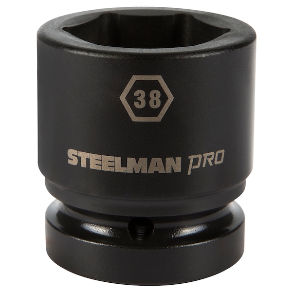 Every mechanic knows that having a reliable set of tools can make your life easier when working on heavy-duty vehicles and equipment. The STEELMAN PRO 79311 1-Inch Drive 6-Point 38mm Impact Socket is ideal for use in performing maintenance, repairs and service on large trucks and tractor trailers, farming equipment and tractors, oilfield and construction equipment, and mass transit vehicles. Made from drop forged and heat treated chromoly steel, these sockets feature a ball detent recess on the 1-inch drive end to help hold it securely onto ratchets, air wrenches, adapters, and extensions. The 6-point design grips the sides of fasteners and not the corners, reducing wear and the chance of rounding the fastener. The socket features a rust and corrosion resistant black phosphate protective coating with laser etched size callouts and markings. Rated to withstand up to 150% of ASME torque requirements for impact tools, this socket can handle tough use in any professional shop / garage, home workshop, or on the work site.