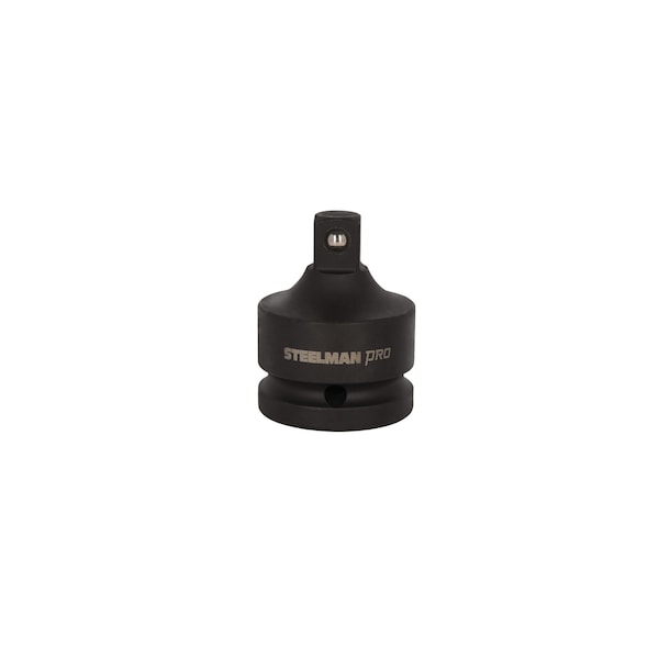 Few things are as frustrating as having your favorite ratchet but not being able to find the socket you need that is the same drive size. Don't buy another socket or ratchet, just use the STEELMAN PRO 79363 3/4-Inch to 1/2-Inch Drive Friction Ball Reducer Adapter to make better use of the entirety of your existing socket and ratchet collection. This impact grade adapter gives you greater flexibility with your current sockets and drive tools by letting you use 1/2-inch drive sockets with your heavy-duty 3/4-inch drive ratchet. Made from heat-treated chromoly alloy steel this tool features a professional grade, black phosphate protective coating that provides increased rust and corrosion resistance while also being easy to wipe clean of grease, oil, and other grime. The 1/2-inch male drive end has a built-in friction detent ball that clips into the recess inside sockets to hold them securely to the adapter until the job is done. Similarly the 3/4-inch female base of the adapter has its own detent recess to keep it firmly in place on ratchets and impact wrenches during use.