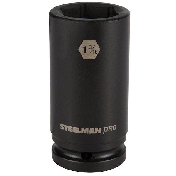 Every mechanic knows that having a reliable set of tools can make your life easier when working on heavy-duty vehicles and equipment. The STEELMAN PRO 79286 3/4-Inch Drive 6-Point Deep Impact 1-3/16-Inch Socket is ideal for use in performing maintenance, repairs and service on large trucks and tractor trailers, farming equipment and tractors, oilfield and construction equipment, and mass transit vehicles. Made from drop forged and heat treated chromoly steel, this socket features a ball detent recess on the 3/4-inch drive end to help hold it securely onto ratchets, air wrenches, adapters, and extensions. The 6-point shape grips the sides of fasteners and not the corners, reducing wear and the chance of rounding the fastener and the deep well design allows easy reach of nuts on extended threads and recessed bolts. The socket features a rust and corrosion resistant black phosphate protective coating with laser etched size callouts and markings. Rated to withstand up to 150% of ASME torque requirements for impact tools, this socket can handle tough use in any professional shop / garage, home workshop, or on the work site.