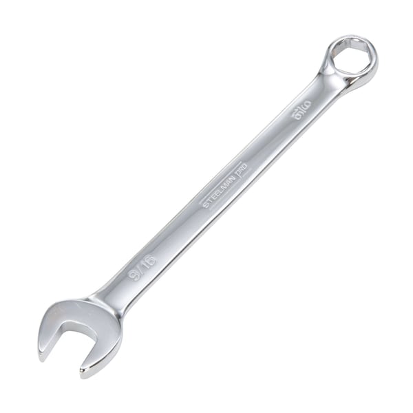 Work with the same quality tools as service technicians with the STEELMAN PRO 78354 9/16-Inch Full Polish SAE Combination Wrench with 6-Point Box End. Constructed of heat treated chrome vanadium steel alloy this tool will meet or exceed ASME and ANSI torque standards to give you the long lasting durability you require from your tools. Size callouts are stamped into the steel both vertically and horizontally on both sides of the wrench to make identification easy. A mirror-polish chrome plating covering provides rust and corrosion resistance and is easy to wipe clean when soiled with oil and other workshop grime. The open end on this combo wrench is angled 15-degrees to provide increased leverage and easier access to fasteners in tight places. Similarly, the box end has a 15-degree offset to provide your fingers with that little bit of extra clearance that they need as you work. The 6-point box design grips the sides of fasteners and not the corners to provide maximum torque transfer with a reduced chance of rounding off fasteners.
