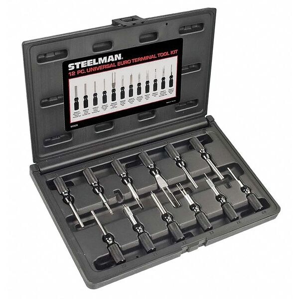 Terminal Tools Kit, Length 11 1/2 in, Width 7 1/2 in, Height 2 in, Color Black, Includes ABS 4.0 mm Round Terminal Tool,3.5 mm Round Terminal Tool,2.5 mm Round Terminal Tool,LSK 1.5 mm Pin Side Tool,Maxi Power Timer 2 Pins Tool,JPT/SPT Terminal Tool,MLK 1.2 mm Terminal Tool,SLK 2.8 mm Primary Tool,LSK 8 Terminal Tool,Secondary Tool,SLK 2.8 mm Primary & Secondary Tool,Superseal Terminal Tool, Number of Pieces 13, Application Electrical System In Vehicles