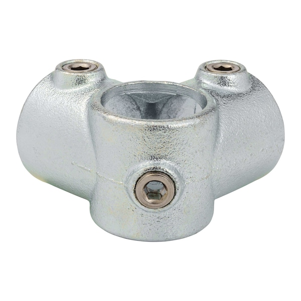 The 1-1/4-in Galvanized Side Outlet Tee is a unique fitting allowing for pipes to intersect from three directions. This fitting allows for two pipes to join in a 90-degree angle and a third pipe to run through this intersection perpendicular to the other two pipes. This part is commonly used in rectangular structures or as the corner joint for the middle rail in railing. This fitting comes with three set screws to secure each pipe to the fitting outlet.