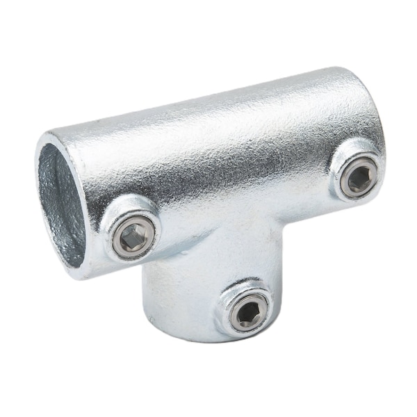 The 1-1/4-in Galvanized Three Socket Tee is designed to create a 90-degree joint between two pipes. This item allows for a secure joining of a top rail to an intersecting bottom rail or an intersection of three separate pipes to form a T shape. Three set screws are included at each inlet to secure pipes within the fitting.