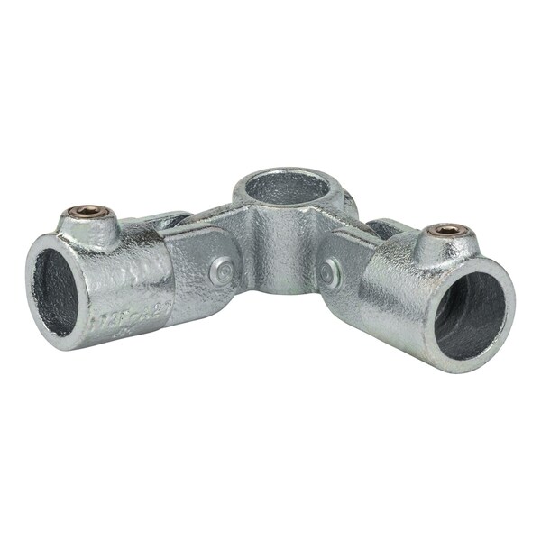 The 3/4-in Galvanized Corner Swivel Combo creates a corner joint with the capability of swiveling the outside pipes for adjustments. The center sleeve allows a pipe to run through while two other pipes, perpendicular to one another, are allowed adjustments for a 0 to 180 Degrees angle from the center pipe. Each connection point on the fitting comes with a set screw to tighten for security.