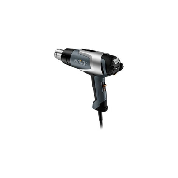 STEINEL 110025598 HG 2320 E LCD PROFESSIONAL HEAT GUN FITS PERFECTLY IN YOUR HAND AND A REAL PLEASURE TO USE: THE HG 2320 E COMES WITH AN IMPRESSIVE 2300 W OF POWER AND DELIVERS HOT AIR AT BETWEEN 80 ¿ 650 °C. TEMPERATURE IS VERY EASY TO CONTROL BY THE JOYSTICK, GIVING YOU ABSOLUTE PRECISION. TOGETHER WITH THE RESIDUAL HEAT INDICATOR, THE LCD INFORMATION DISPLAY ENSURES ADDITIONAL CERTAINTY WHILE THE FOUR INDIVIDUALLY SELECTABLE PROGRAMMES PROVIDE EXTRA FLEXIBILITY. IN CONJUNCTION WITH THE VARIOUS PUSH-ON NOZZLES FROM THE RANGE OF ACCESSORIES, THE HG 2320 E IS AN EXCELLENT CHOICE FOR WORKING ON HEAT-SENSITIVE OBJECTS. ALSO FROM THE ASPECT OF SERVICING: IF THE POWER CORD EVER GETS DAMAGED, IT CAN BE CHANGED WITH EFFORTLESS EASE.