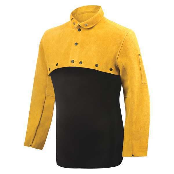 Color Brown, Cuff Style Snap, Fabric Weight 3 oz/sq ft, Features and Collar, Non-Reflective Snaps Along Front Closure, Rivet Reinforced Seams and Stress Points, Wrist, Front Closure Type Snaps, Garment Type Cape Sleeve, Heat Protection Type Flame-Resistance, Welding, Includes Bib No, Includes Soapstone Pocket Yes, Welding Cape Sleeve, Material Leather, Number of Pockets 0, Size L, Stitching Material Kevlar(R), Wrist Closure Snaps