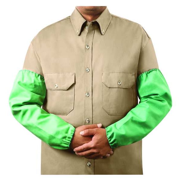 Flame-Resistant Sleeve, Cotton, 18 in Length, Green, Elastic Cuff