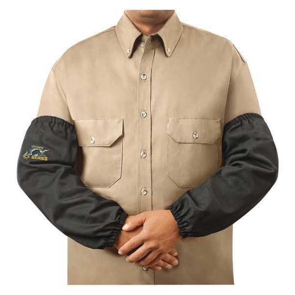 Flame-Resistant Sleeve, Para-Aramid, Woven Carbonized Fiber, 18 in Length, Black, Elastic Cuff