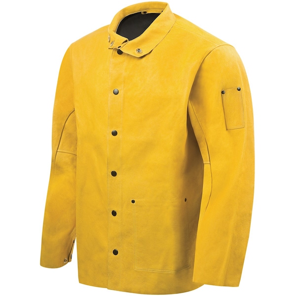 Leather Welding Jacket, Leather, 30 in Length, Snap Closure, 3 Pockets, Tan, M