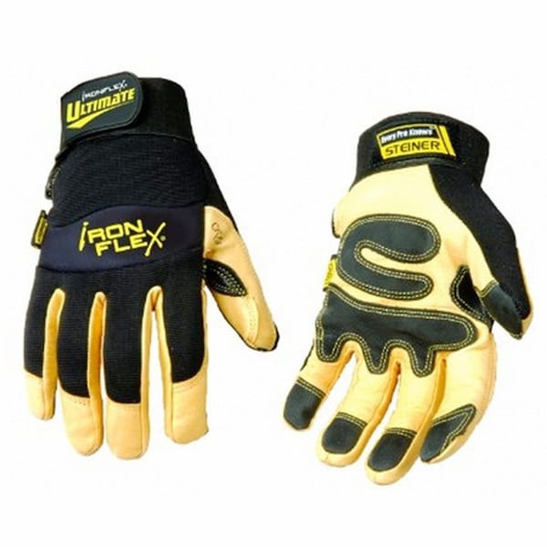 Steiner 0912-L IRONFLEX Ultimate Gloves Large The Ultimate comfortable leather IronFlex work glove.Features: Ultimate pig grain leather Lightweight, durable, genuine pig grain leather palm Abrasion and oil resistant Delivers extended wear and dexterity Neoprene knuckle guard protects knuckles and maintains contour fit Anti-slip textured PVC finger and palm reinforcements provide maximum grip and protection Size Large
