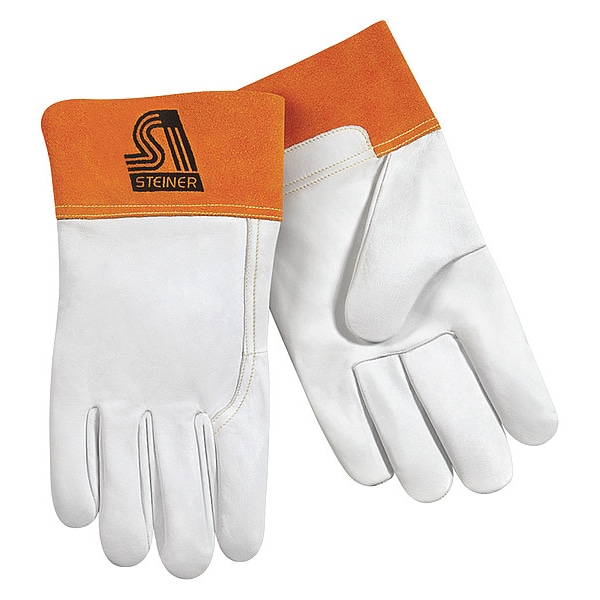 Welding Gloves, Welding Glove Application TIG, Leather Palm Material Goatskin, Glove Back Material Goatskin, Glove Length 14 in, Glove Leather Grade B, Thumb Style Wing, Glove Cut Gunn, Glove Color Family Beige, Cuff Safety, Glove Size L, Hand Left and Right, 1 Pair