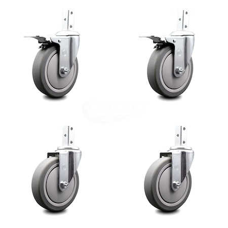 4 Inch Thermoplastic Rubber Swivel 58 Inch Threaded Stem Caster Set with Total Lock Brake