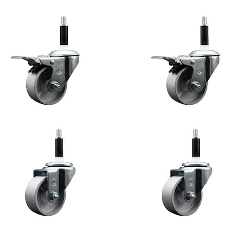4 Inch Nylon 10 MM Threaded Stem Caster Set 2 Brakes SCC