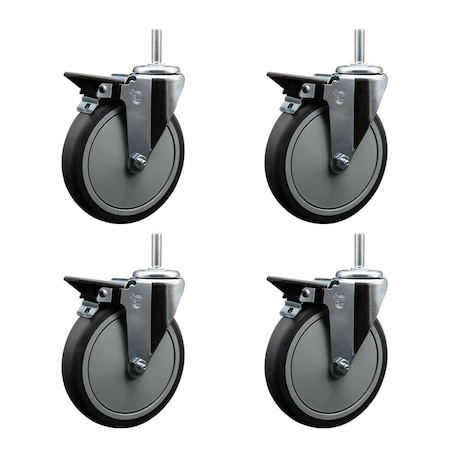 6 Inch Thermoplastic Rubber Wheel Swivel 58 Inch Threaded Stem Caster Set with Brake SCC