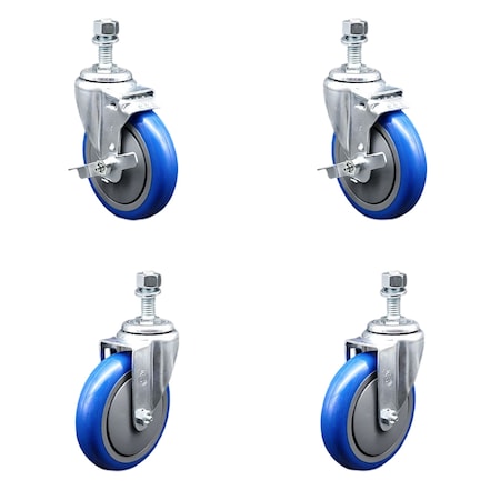 3.5'' Thermoplastic Rubber Wheel Swivel 1-1/2'' Expanding Stem Caster Set 2 Brakes, 4PK