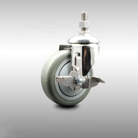 3.5'' SS Solid Poly Swivel 1-1/4'' Expanding Stem Caster Set 2 Total Lock Brakes, 4PK