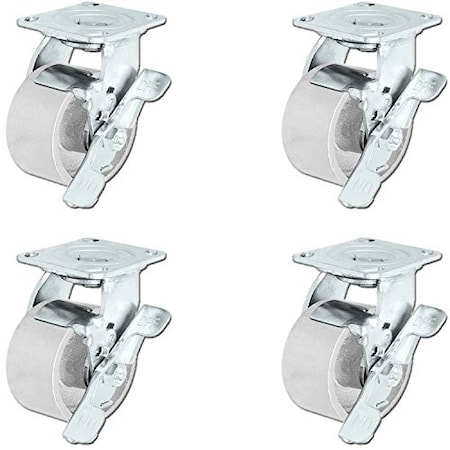 100mm Non-Marking Nylon Swivel Caster, Side Brake, Loads Up To 225 lb
