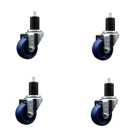 3 Inch Black Polyurethane Swivel 34 Inch Threaded Stem Caster Set 2 Total Lock Brakes