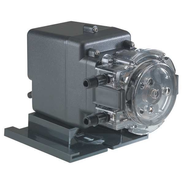 Peristaltic Chemical Metering Pump, Control Programs Manual Control, Discharge Connection Size 1/4 in, Discharge Connection Type NPT, Flow Rate (Maximum) 10 gpd, Flow Rate (Minimum) Not Applicable, Horsepower (Maximum) 1/30 hp, Intake Connection Size 1/4 in, Intake Connection Type NPT, Media Temperature (Maximum) 125 Degrees F, Media Temperature (Minimum) 32 Degrees F, Nameplate Voltage 120V AC, Number of Feeds 1, Pressure (Maximum) 100 psi, Reproducibility +/-2.0 Percent