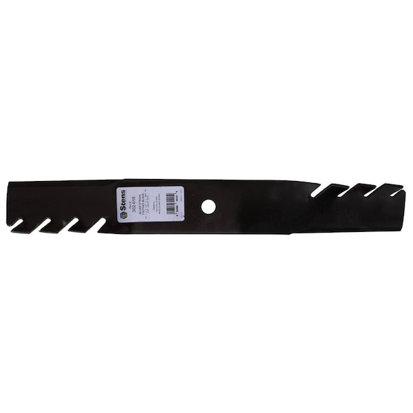 Stens Toothed Lawn Mower Blades work for discharging, bagging and mulching applications, making them highly adaptable for different lawn mowing needs. Because of this exceptional 3-in-1 versatility, toothed lawn mower blades are ideal for lawn services with clients who have different preferences. The versatility of these blades is also convenient for homeowners who may choose to handle lawn clippings differently over the course of the season. Toothed blades create an air draft that pulls the grass blades upwards as the blade circulates. With the grass standing up straighter, the blade produces a more uniform and consistent cut for a beautifully manicured lawn. The suction produced by the blade circulates the clipping within the mower deck for finer cuttings, easier bagging and more powerful discharging. Stens toothed lawn mower blades are an ideal choice for anyone needing versatility when mowing lawns.