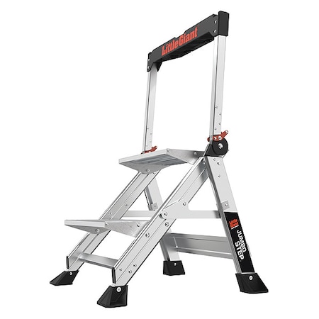 Folding Step, 2 Steps, 375 lb Load Capacity, 24 in Overall Height, Aluminum, Silver