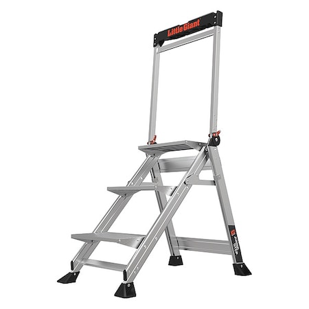Step Stand, 3 Steps, 375 lb Load Capacity, 36 in Overall Height, Fiberglass, Orange/Silver/Black