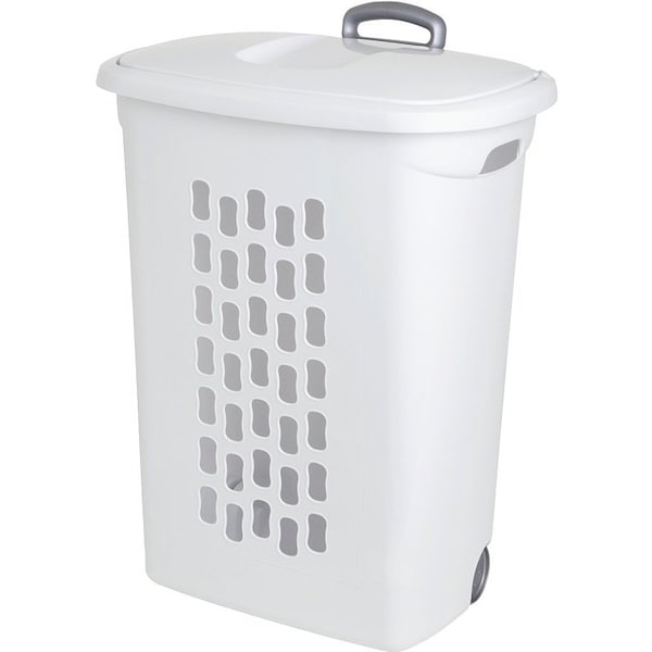 he Ultra wheeled hamper offers smooth gliding wheels and a retractable handle that pulls-up to easily transport clothes to and from the laundry room. The lid helps to keep contents contained and concealed and the hole pattern allows clothes to remain ventilated.