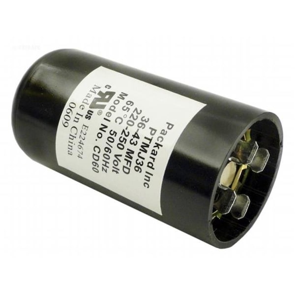 - The Start Capacitor 36-43 Mfd is a replacement capacitor that has 250 vac and fits within the motor of your pool pump.