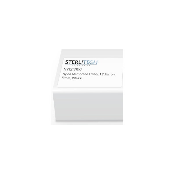 Nylon membrane disc filters: 1.2 μm pore-size, 13 mm diameter, pack of 100. Hydrophilic, low-extractable, inert, durable material supported by an internal polyester web. Typically used for HPLC, microbiology, medical/clinical, and general filtration.
