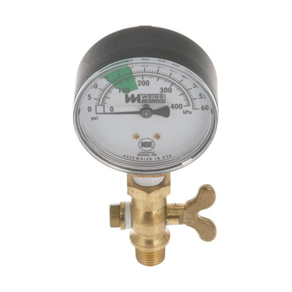 Pressure Gauge;2-1/2" Diam. Bottom Mount 1/4" Mpt 0-60 Psi With 1/4" Mpt;Valve, ;Stero Dishwasher Stbuw, Stpc, Stpcw, Stw, Systematic,;Utensil