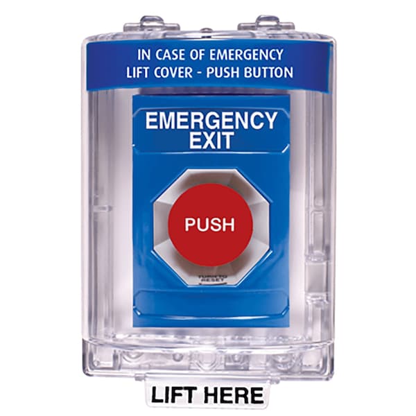 Stopper Station, Blue, Flush Cover, Universal Stopper, Horn, Turn-to-Reset, inEMERGENCY EXITin English