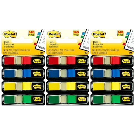 Flags, Assorted Primary Colors, .47 in. Wide, 35 Flags/Dispenser, 4 Dispensers/Pack, 3 Packs, 420PK