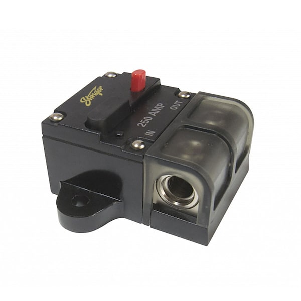 This accepts direct connection of 0 or 4 gauge power wire with the included adapters and can be used as an alternative to fuse holders and fuses. These hose panel or fire wall mount circuit breakers also feature a unique push button reset which can also be used as a kill switch and a high tech water resistant housing with protective rubber bolt caps that is splash and dust proof. Includes terminal cover.