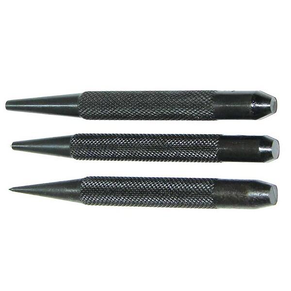 Punch Set Type Combination Punch Punch Size Range Inch 116 38 Number of Pieces 3 bull Black oxide finish for rust prevention br bull Knurled body for better grip br bull Hardened both ends, RC 45 to 52 br bull 4 length br bull Supplied in fitted case br bull Set contains 532 drive pin punch, 532 centre punch and scriber