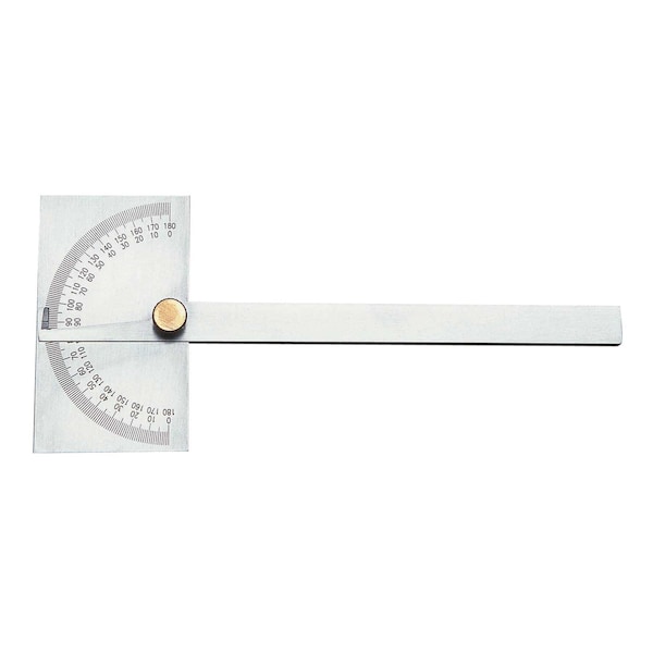 Head Type Rectangular Blade Length Inch 6 Maximum Measurement Degrees 180 Measures angles from 0180Deg in opposite directions thus permitting reading an angle directly and also its supplement Used for drawing radial lines, transferring angles and setting bevels Head measures 3516 x 2 Features 6 arm and knurled thumb lock nut Blade secured firmly by lock nut at any angle