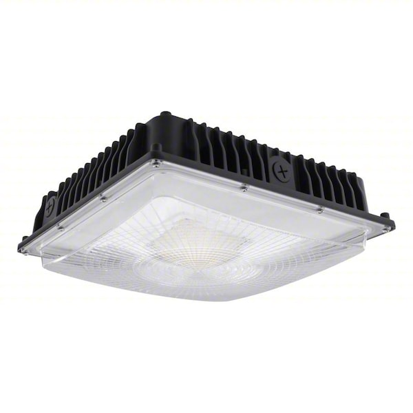 Low-Profile Canopy Light, Color Temperature 3000K, 4000K, 5000K, Lumens 4,250 lm, 6,000 lm, 8,350 lm, Fixture Wattage 60 W, Voltage 120 to 347V AC, Light Distribution Shape Type V, LED Replacement For 50/70/100W HPS/MH, Light Technology LED, Fixture Shape Square, Height 9 1/2 in, Width 9 1/2 in, Depth 3 1/4 in, Fixture Housing Color Bronze, Fixture Housing Material Die Cast Aluminum
