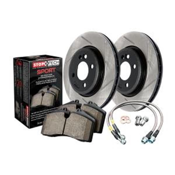 Significant brake performance improvements using the factory calipers and pre-matched direct-replacement OEM sized components. This StopTech Sport Axle Pack includes Slotted StopTech Sport Rotors StopTech Sport Pads and StopTech Stainless Steel Lines. Features -Aggressive Look Black E-Coated Sport Rotors -High Performance StopTech Sport Pads -Stainless Steel Hoses for Better Response -Significantly Improved Braking Performance -Moderate Dust Vechile Fits: -2008 - 2017 Impreza Subaru -2012 - 2014 WRX Subaru -2013 - 2017 WRX STI Subaru
