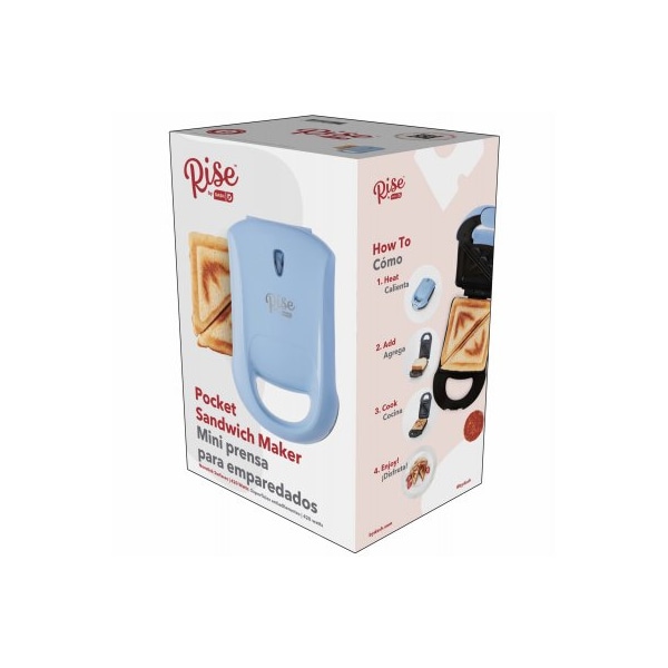 Create crisp grilled sandwiches in minutes with the Rise by Dash This versatile appliance is ideal for cooking hot sandwiches and paninis, with dual nonstick surfaces that heat evenly and release cleanly for perfect results every time Zero setup is required to cook, just plug it in and you're ready to go The compact size makes this Sandwich Maker convenient and easy to store in any kitchen